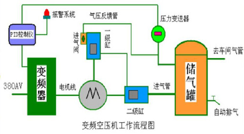 ● 采取變頻調(diào)速方式來降低空壓機(jī)電動(dòng)機(jī)的軸功率輸出。